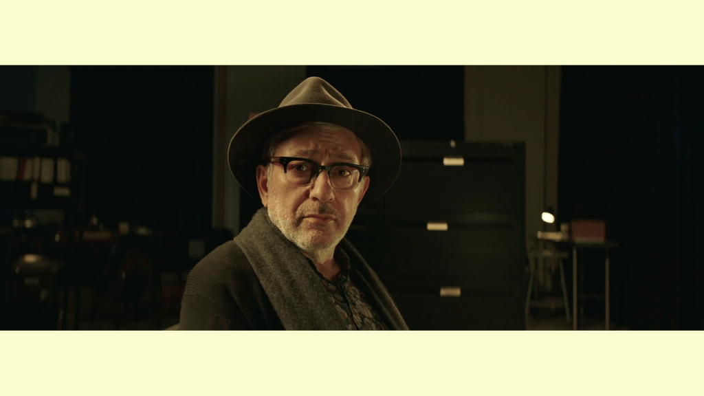 COMO EXPECTÁVEL TENDO EM CONTA O TOM DO FILME ATÉ ENTÃO, SURGE UM PLANO DO ROSTO DE SULEIMAN ABSOLUTAMENTE ATÓNITO COM O QUE LHE ACABARAM DE QUESTIONAR. NOS SEUS OLHOS LEMOS, MAIS UMA VEZ E AGORA TALVEZ MAIS DIRETAMENTE, ESTÁ A FRASE PROFUNDAMENTE SARCÁSTICA DO TÍTULO DO FILME – IT MUST BE HEAVEN: