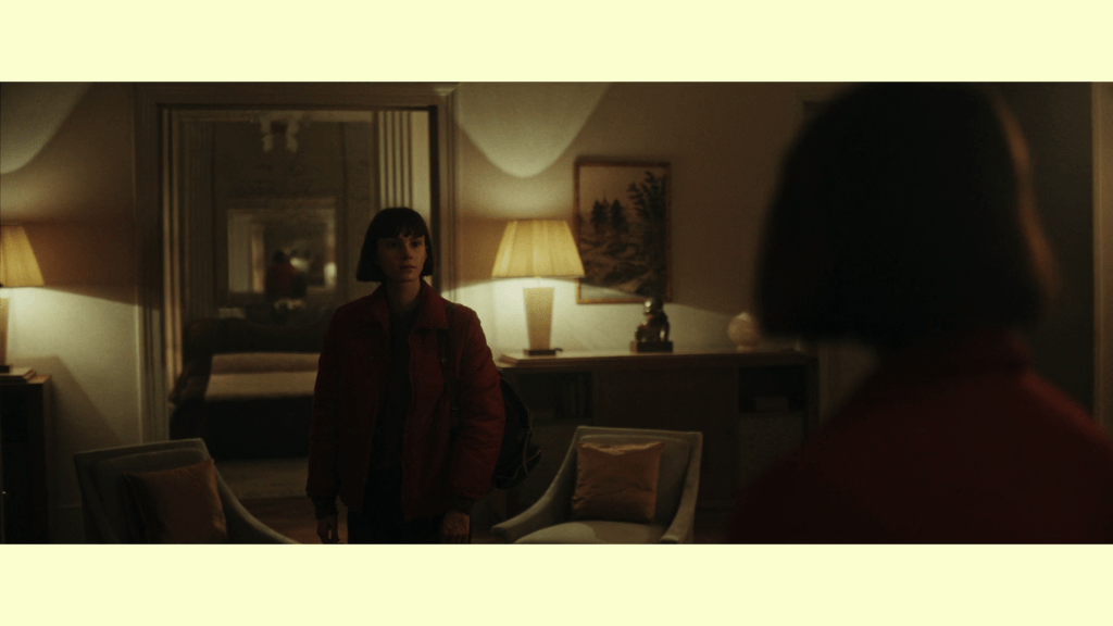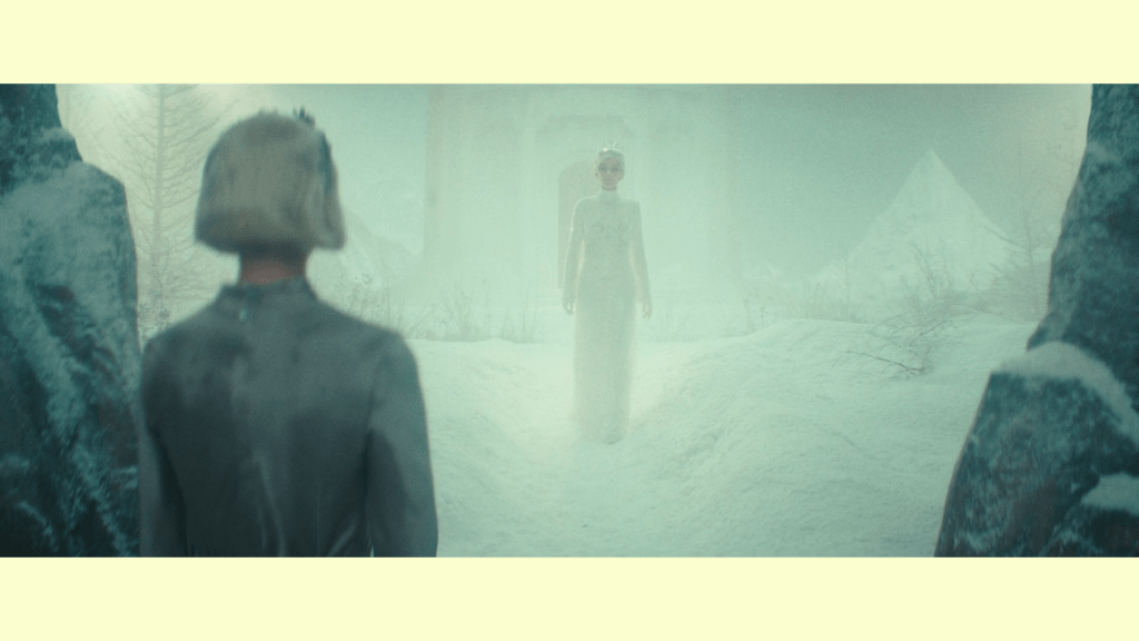 É AQUI QUE ESTE ASPETO METACINEMATROGRÁFICO DO FILME SE EVIDENCIA. LA TOUR DE GLACE NÃO ACUSA O CINEMA DE MENTIR; ACUSA-O DE EDUCAR O OLHAR PARA A DEFORMAÇÃO. TAL COMO O ESPELHO DO DIABO DE ANDERSEN, A CÂMARA ENFATIZA, SELECIONA, ILUMINA O QUE CONVÉM. FAZ DO SOFRIMENTO ALGO “INTERESSANTE”. UMA FERRAMENTA QUE EXISTE TAMBÉM PARA A INESTÉTICA, QUE ACABA POR ABRIR UMA CRISE PROFUNDA NA PERSONAGEM DE CRISTINA QUANDO SE ENCARA NO GRANDE ECRÃ COMO RAINHA DA NEVE.